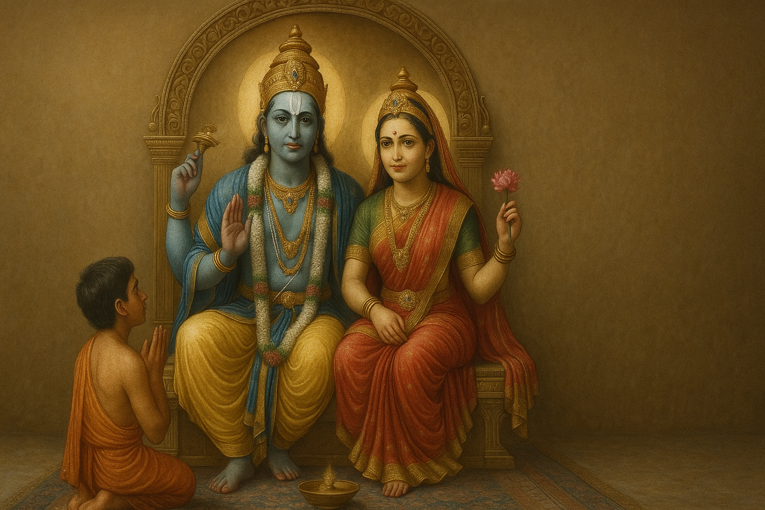 Devotees meditate on Lord Narayana, chant Vishnu's names, and engage in spiritual practices to attain divine blessings.
